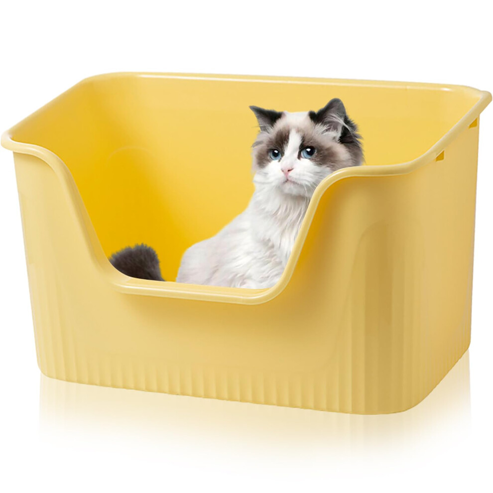 Duscdesp Open Top Cat Litter Box, High Sided Extra Large Cat Litter Tray, Splashproof - 63 * 45 * 33cm (Yellow)