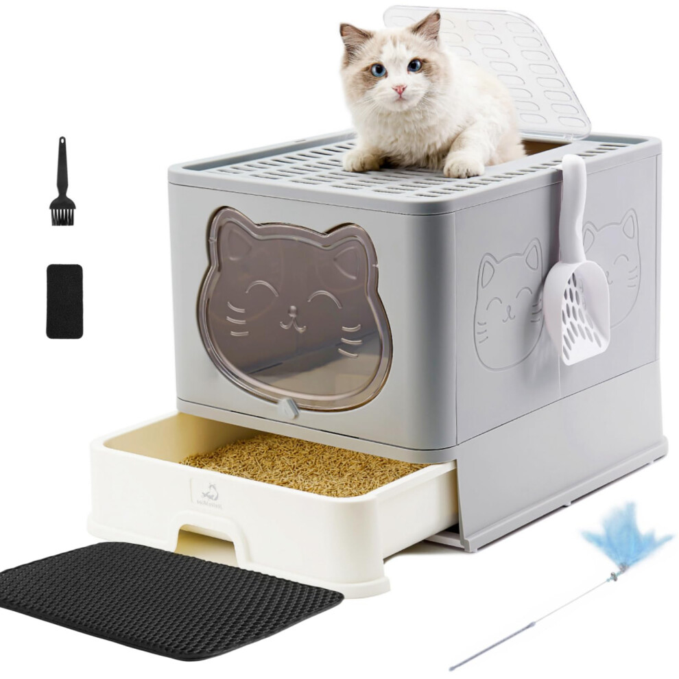 Extra Large Enclosed Cat Litter Tray & Scoop