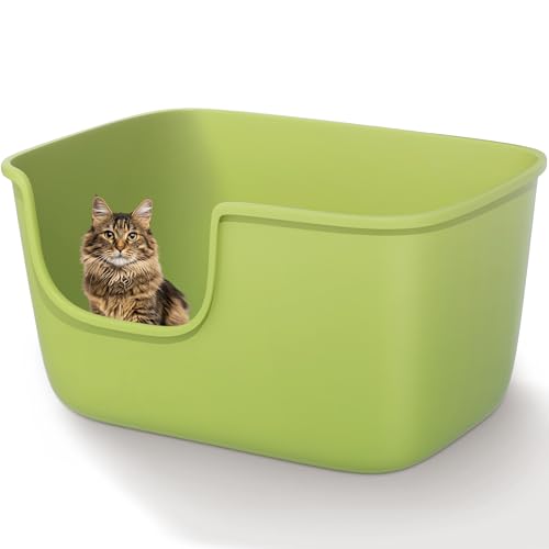 Vealind Large High Sided Cats Litter Tray Extra Deep Kitty Litter Box for Multi Cats with Household, High Wall Cat Litter Tray Anti-Splashing Kitty Litter Box (Green)
