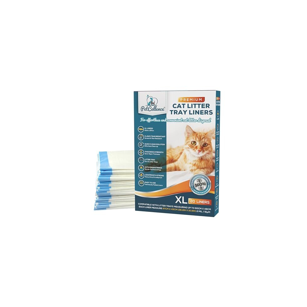 PetCellence XL Cat Litter Tray Liners 20 - Scratch Resistant with Drawstring for Extra Large Cat Tray Liners - 2mil Thick & Strong Cat Litter Bags - Size 97cm x 43cm