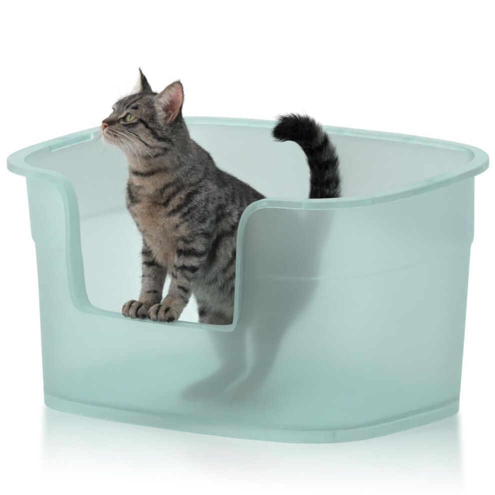 Extra Large Cat Litter Tray, 63cm x 45cm x 33cm Deep, Easy Cleaning, Lowered Entry, Anti-Spillage, Transparent Green