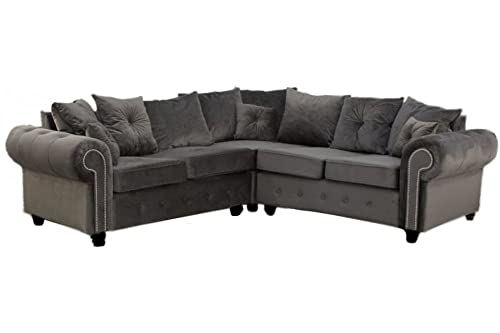 Grey Corner Sofa Plush Ashwin Suite & Cushions- Chesterfield sofa settee - Luxury large corner sofa for living rooms - DELIVERY ALL OVER UK-002