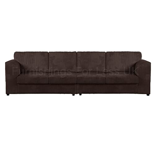 New Luxor Chocolate Fabric 4 Seater Long Sofa | Fullback Jumbo Cord Settee Large Couch For Living Room (Full Back Cushions, Chocolate)