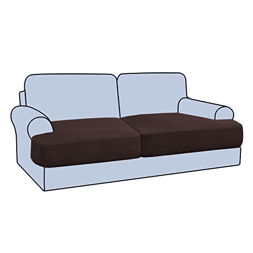 Sofa T Cushion Seat Covers Polar Fleece Couch Cushion Slipcovers for Individual Cushions Stretch Non-Slip with Elastic Bottom (Brown,Large 2 Seater)