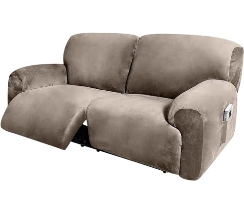 BLUEZY Recliner 2 Seater Sofa Covers, Large Sofa Cover, Extra Wide 75'' - 100'', Reclining Chair Cover, 6-Piece Velvet Stretch Couch Covers with Side Pocket, Thick Soft Washable G