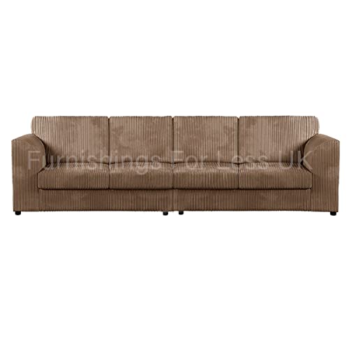 New Luxor Coffee Fabric 4 Seater Long Sofa | Fullback Jumbo Cord Settee Large Couch For Living Room (Full Back Cushions, Coffee)