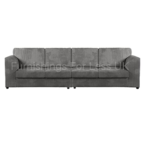New Luxor Grey Fabric 4 Seater Long Sofa | Fullback Jumbo Cord Settee Large Couch For Living Room (Full Back Cushions, Grey)
