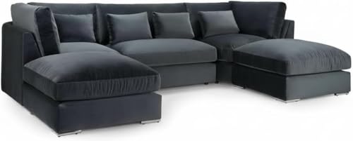 Belgravia Large U-Shape Sofa in Black Fabric | Choice of Scatter Back or High Back | Huge 6-Seater Symmetrical Corner Settee with 4 Free Extra Cushions (Black, Scatter Back)