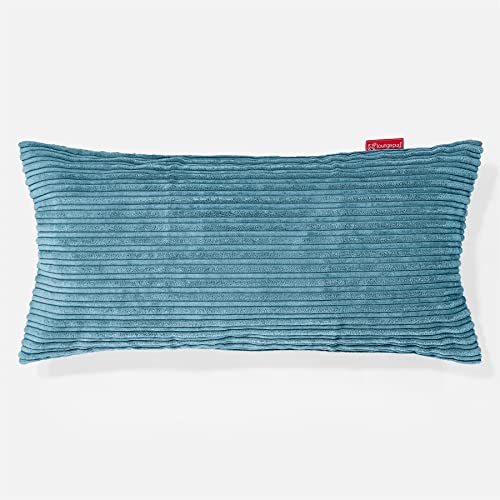 Lounge Pug 40 x 70 cm Extra Large Corduroy Cushions Filled Aegean Blue - XL Rectangular Sofa Pillow Cover with Inner Pad
