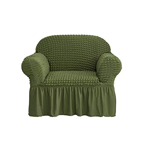 Universal Sofa Covers, Polyester Spandex Fabric 1 2 3 4 Seater Slipcover Couch Covers, Elastic Full Covered Sofa Protector, with Skirt Extra Large (Dark green,1 Seater/Chair)