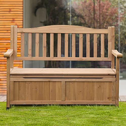 ZMYJTO Wood Outdoor Storage Bench Large Deck Box, Garden Bench Park Seat With Storage Box, Patio Loveseat Sofa With Extra Large Storage Space for Backyard, Balcony, Poolside, Garden
