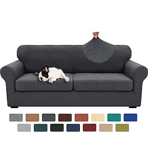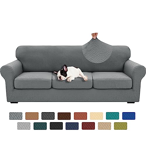 XINEAGE 2024 Newest 4 Pieces Extra Large Couch Covers for 3 Cushion Sofa Super Stretch Sofa Cover for 3 Large Seat Cushion Universal Slip Cover for Living Room (Light Gray), 91"-110"(3 Cushions)
