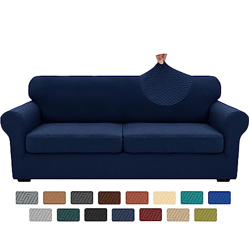 XINEAGE 2025 New 3 Pieces Couch Covers for 2 Extra Large Cushion Sofa Super Stretch Sofa Cover for 2 Large Seat Universal Loveseat Slip Cover for Living Room (Navy Blue), 71"-91"(2 Cushions)