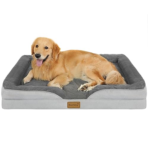 Nepfaivy Dog Bed Extra Large - Waterproof Orthopedic Dog Bed with Pillow Cushions, 111×80cm Soft Extra Large Sofa Bed with Removable and Washable Covers, Dark Grey