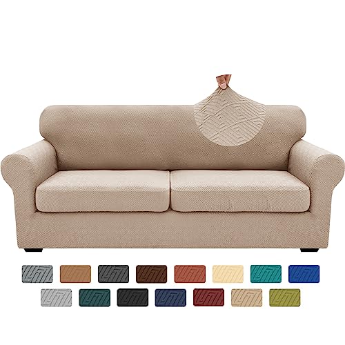 XINEAGE 2025 New 3 Pieces Couch Covers for 2 Extra Large Cushion Sofa Super Stretch Sofa Cover for 2 Large Seat Cushion Universal Loveseat Slip Cover for Living Room (Khaki), 71"-91"(2 Cushions)