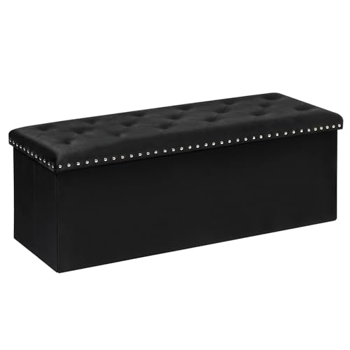 Bonlife 110cm Extra Large Ottoman Storage Box with Lid,Black Folding Toy Chest Boxes Bedroom End of Bed Storage Bench Footstools for Living Room