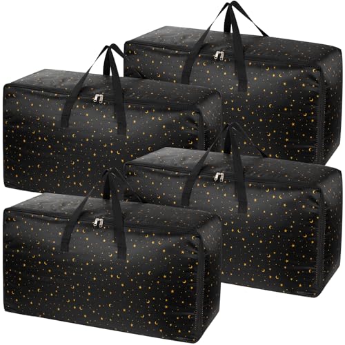 4 Pack 180L Extra Large Heavy Duty Storage Boxes with Lids for Moving House Big Clothes Storage Bags Boxes with Zipper Handles Strong 600D Oxford Cloth (black)
