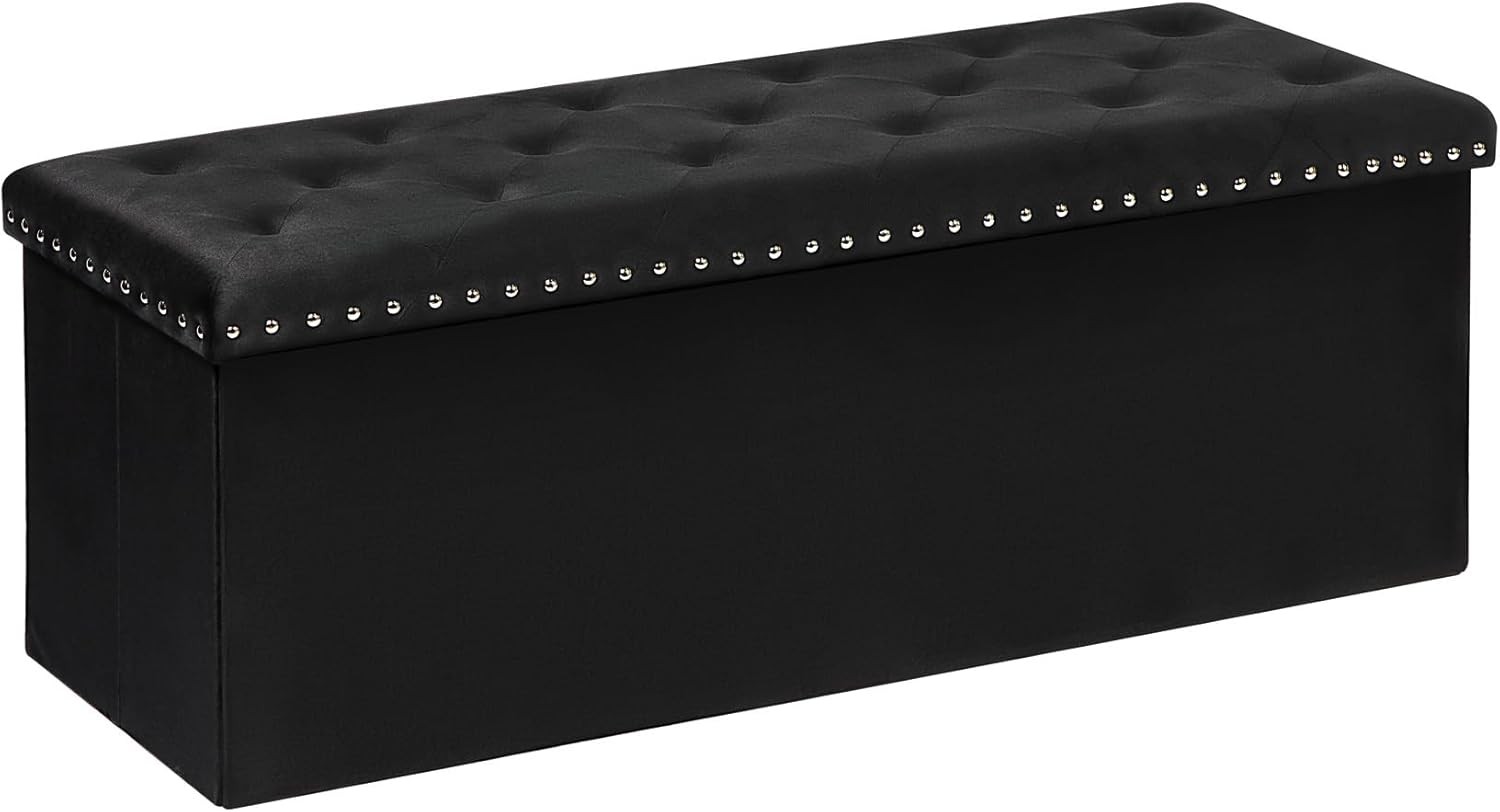 Bonlife Extra Large Ottoman Storage Box with Lid, Black Folding Toy Chest Boxes Bedroom End of Bed Storage Bench Footstools for Living Room,110cm