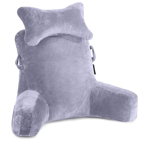 Reading Pillow for Sitting in Bed Couch Adult, Extra Large Bed Backrest Pillow with Detachable Arm Support and Pockets, Adult Back Cushions Chair for Rest, Reading, Watching TV, Grey (L-Standard)