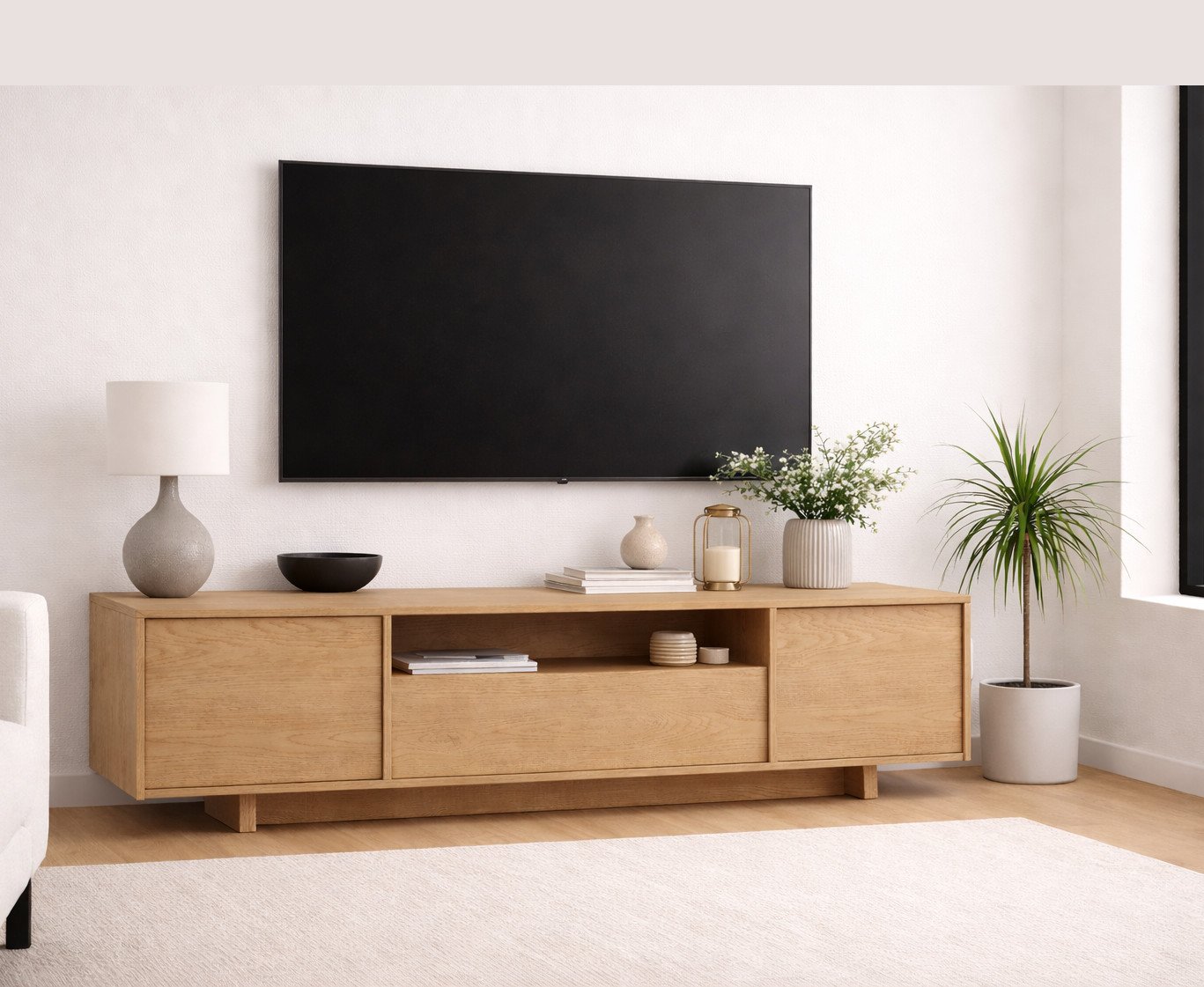 TV Cabinet Extra Large Unit Stand for 80 inch TV Light Oak Modern Storage Japand