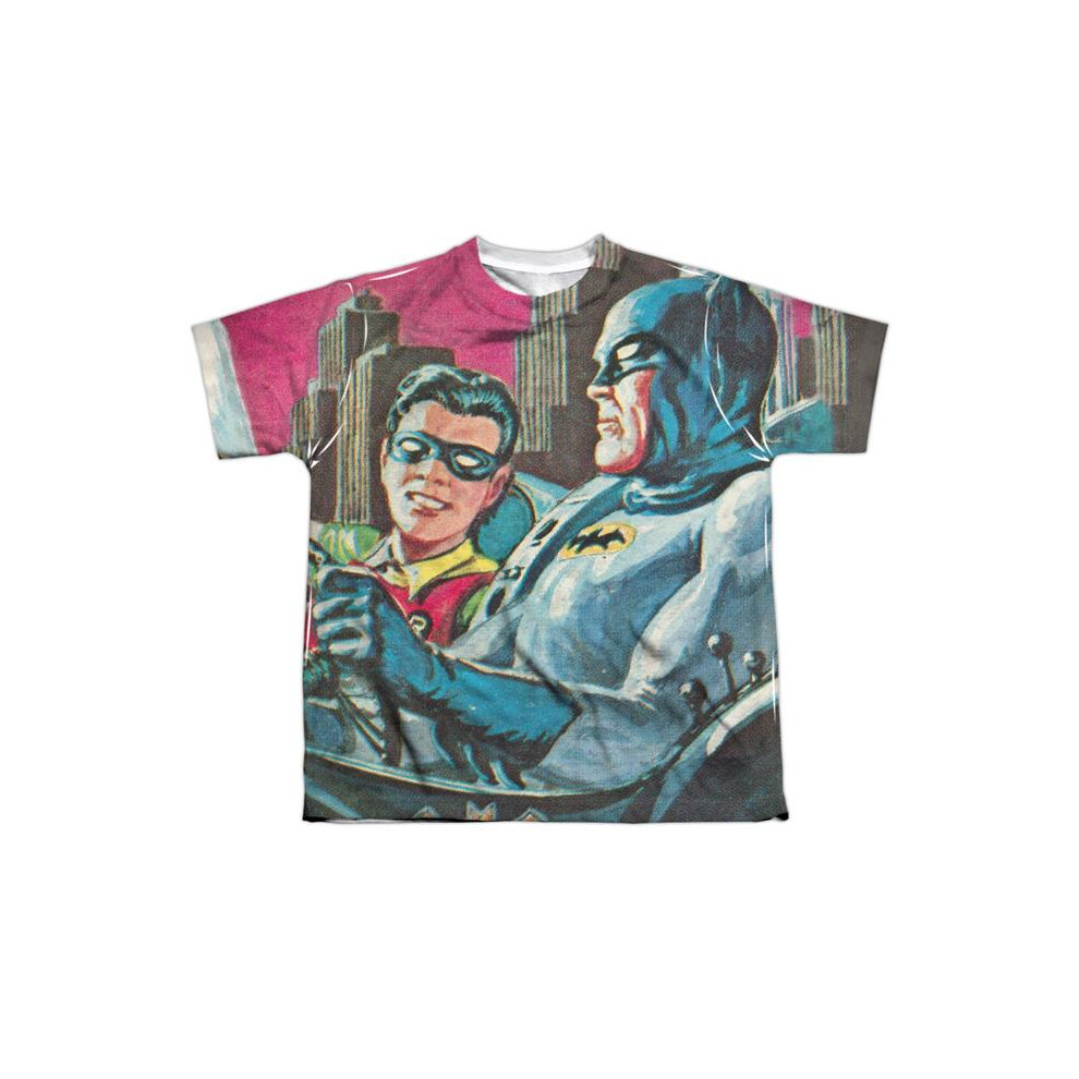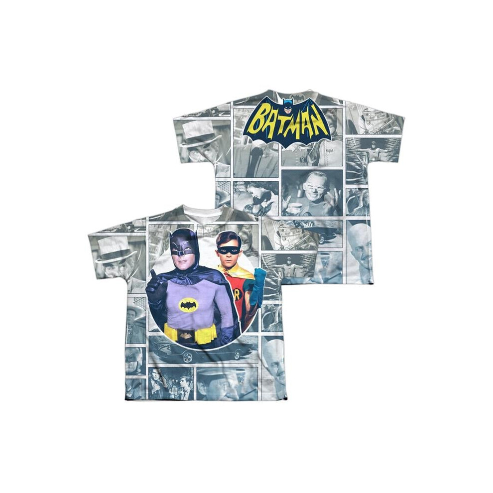 Trevco Sportswear BMT125FB-YTPP-4 Batman Classic TV 60s Panels Front & Back Print Youth Short Sleeve T-Shirt, White - Extra Large