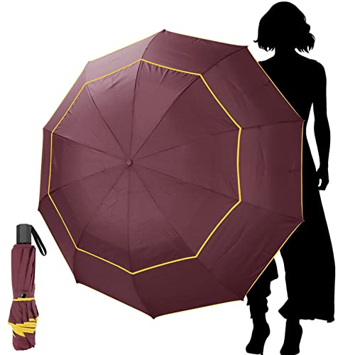 (Claret) Heavy-Duty Extra Large Windproof Umbrella - 51-Inch Wide Canopy, Manual Open/Close, Compact Folding Design for Group, Family, Events, Sunny D