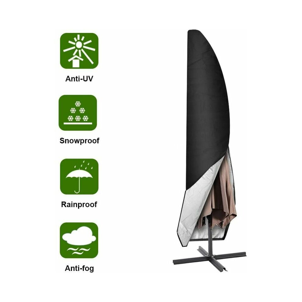 Parasol Cover, Waterproof, Windproof, Heavy Duty Rip Proof Oxford Fabric Extra Large Cantilever Umbrella Cover With Zip (265 X 40/70 / 50 Cm) - Black