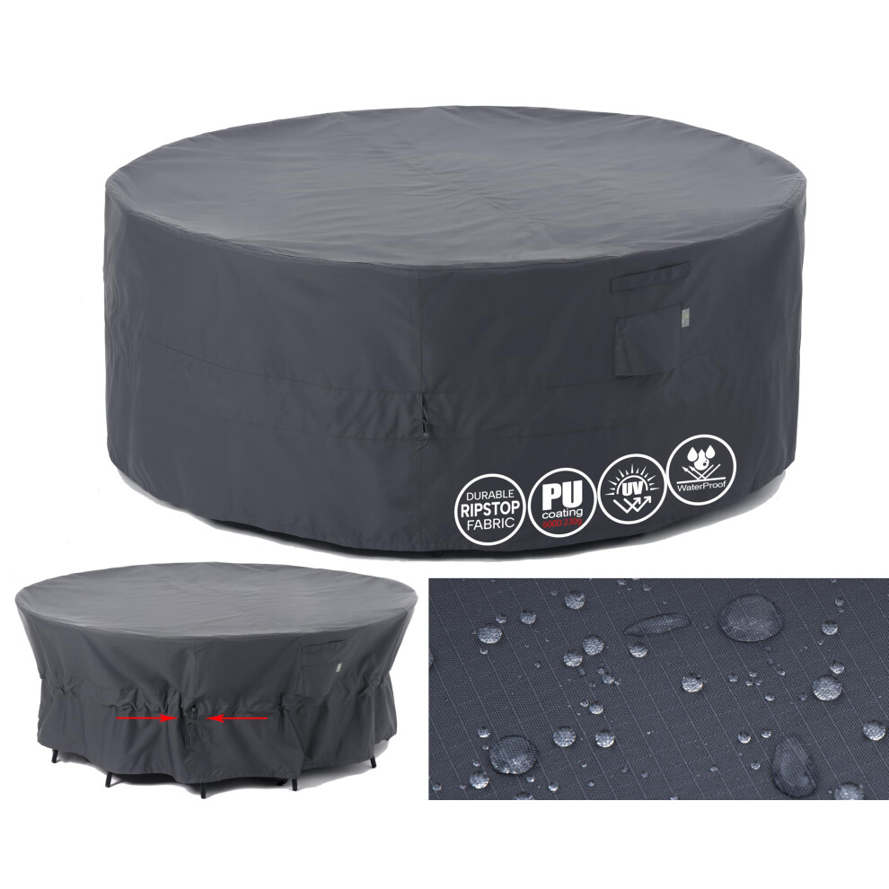 Funshot Round Garden Furniture Covers Waterproof, ?300x90cm Extra Large Garden Table Cover Round 420D Oxford Fabric Outdoor Circular Patio Table Set