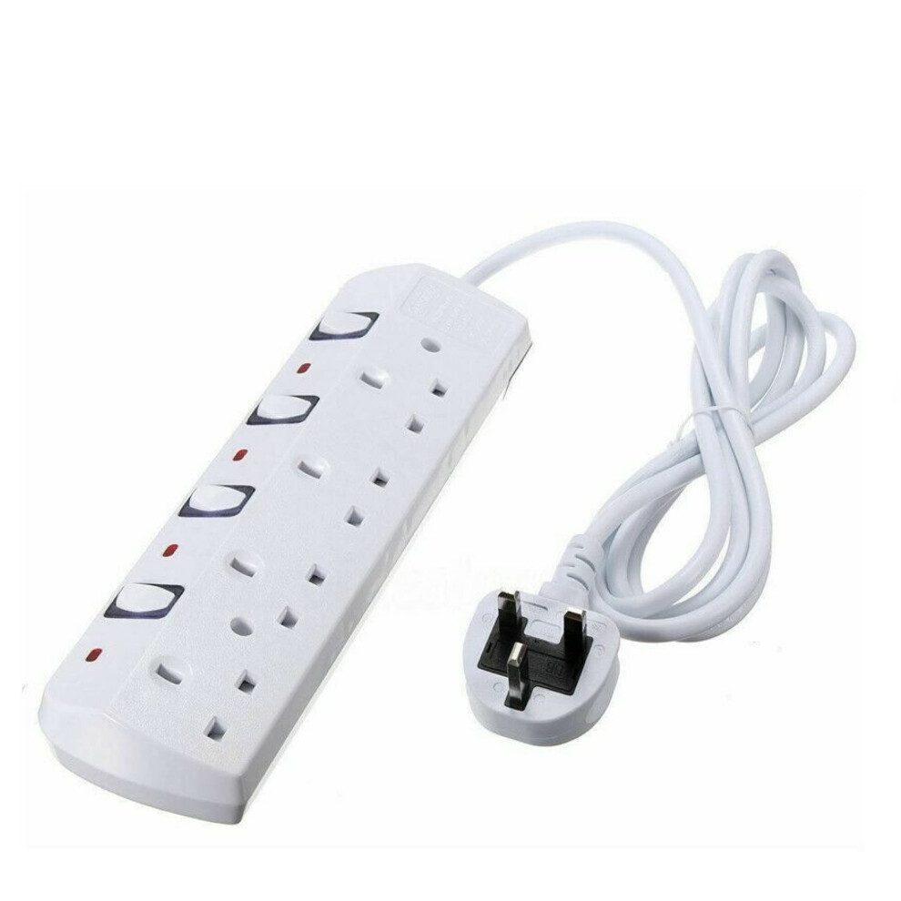 4 Way Long Extension Lead 2 & 4 Meters Individual Switches Socket Power Plug White 13Amp Wall Mounted Board Over Load Extra Protection (4 GANG 5