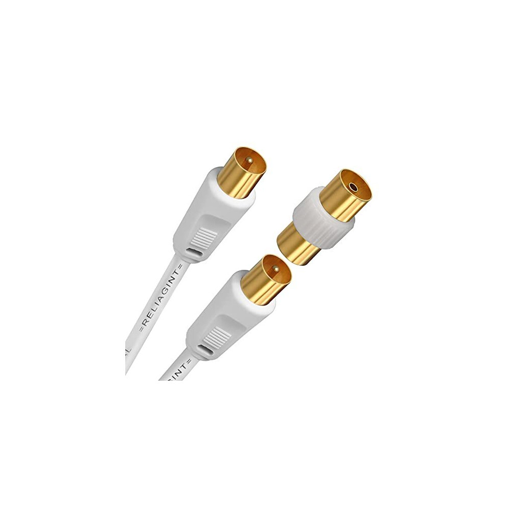 RL 3M White TV Aerial Cable, With Extension Lead Extra Long Replacement, Flex For Cabling, Copper Conductor Full Length, Low Loss for Broadband,