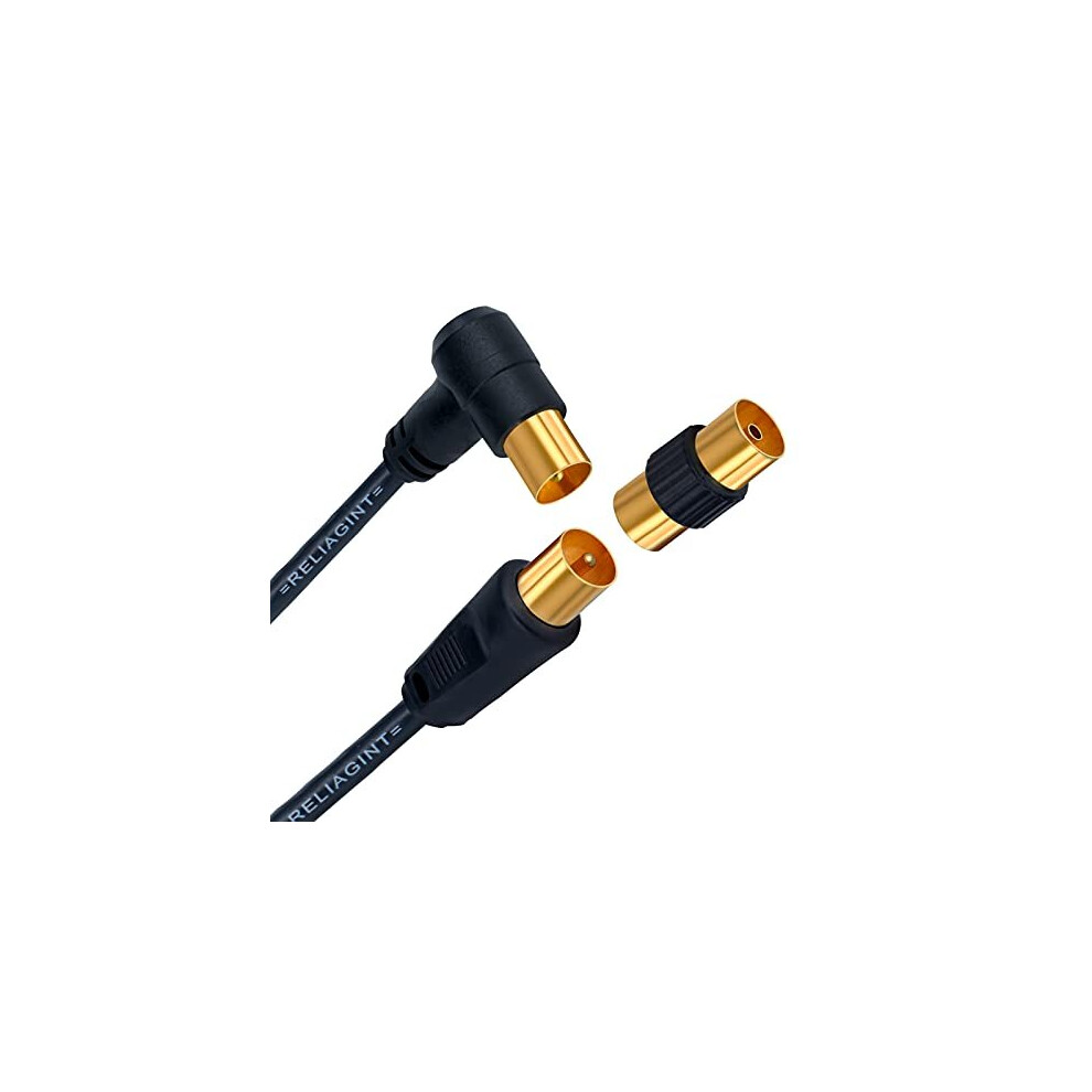 2M Black Straight to Right Angle Flex TV Aerial Cable, With Extension Lead Adapter Extra Long, Copper Conductor Full Length, Low Loss for Broadba