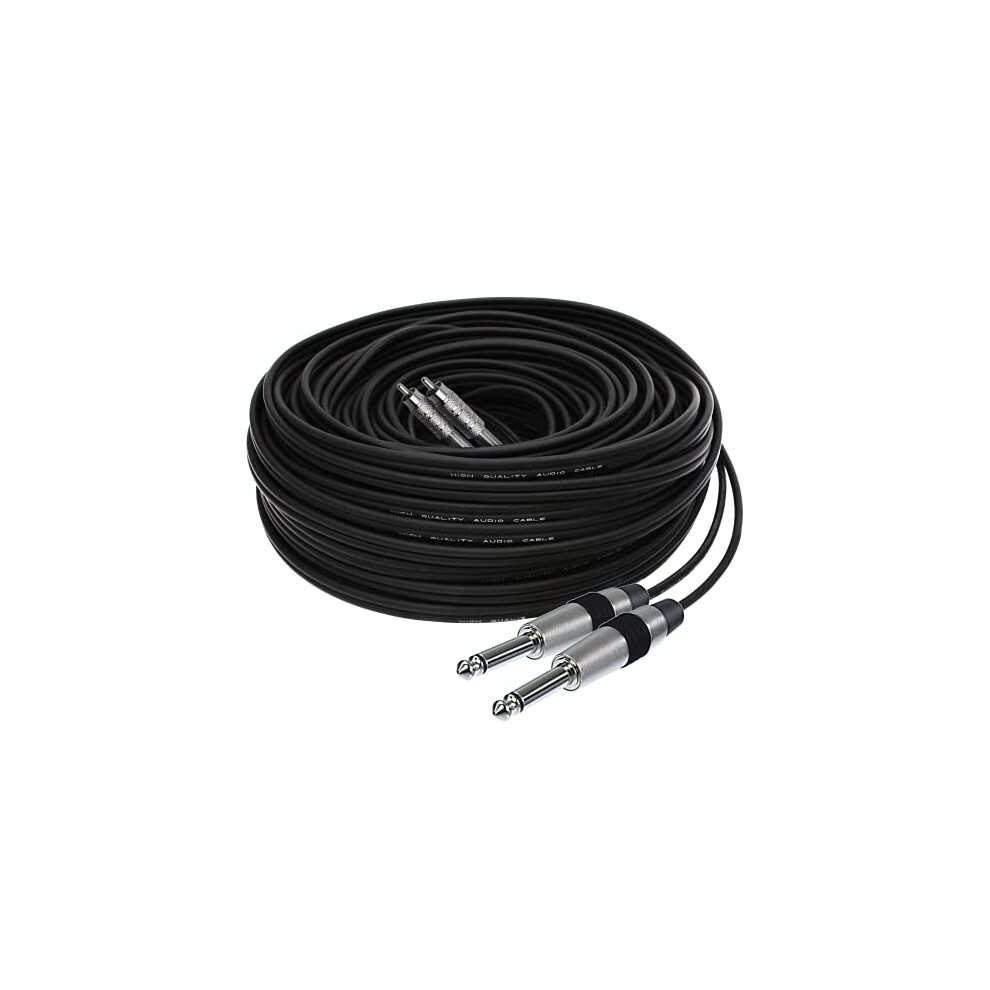 40m Professional Grade Extra Long Audio Lead with 2 x 6.3mm Jack to 2 x RCA Male Phono Plugs for Stereo or Mono Signal Extension Active Subwoofer