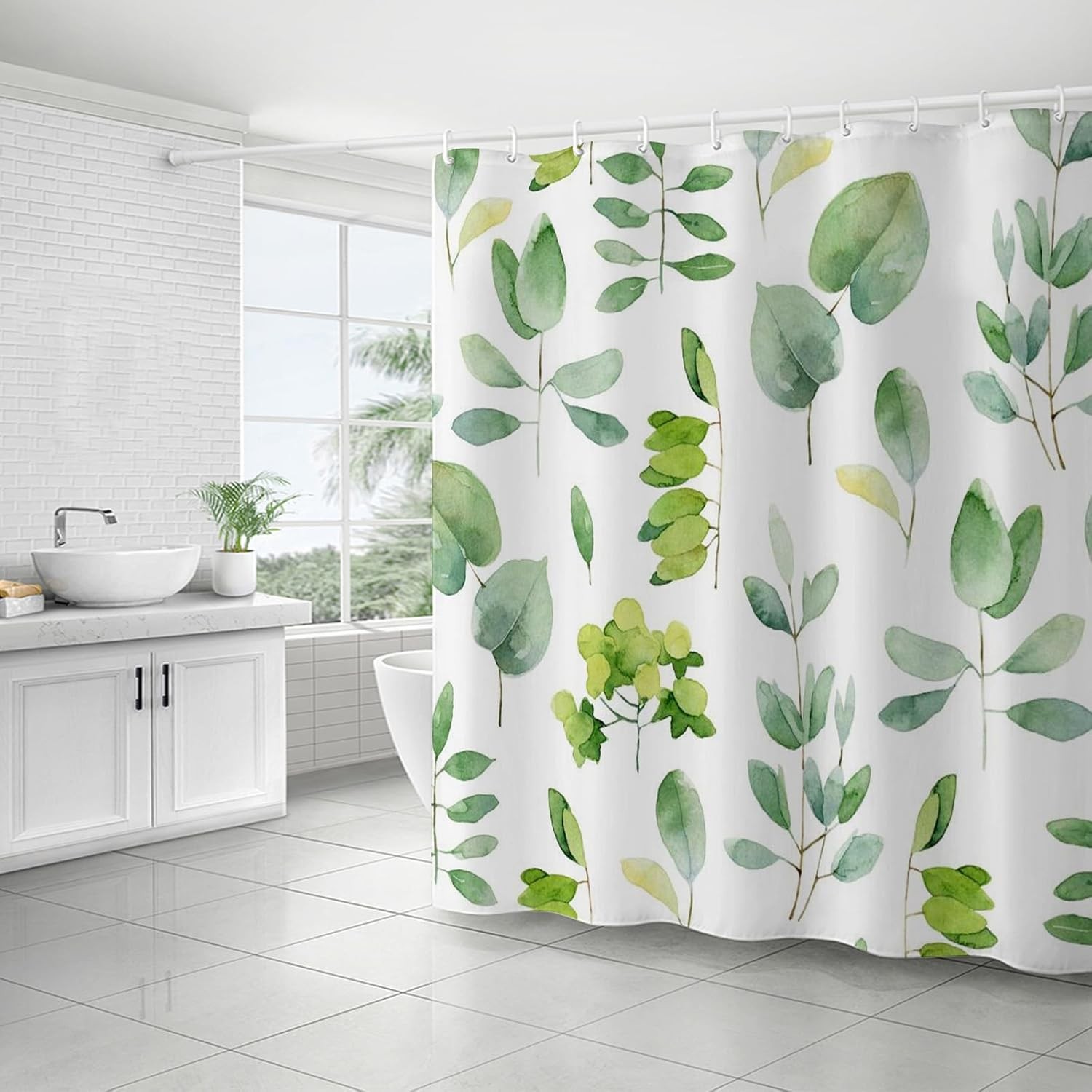 (Green) Extra Long Bathroom Shower Curtain With Hooks Waterproof Curtain