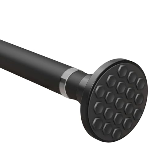 Shower Curtain Rail Extendable Tension Rods 270cm Extra Long Shower Curtain Rods Anti-Slip Shower Rod Wardrobe Pole for Living Room, Bedroom, Bathroom, Balcony (84-270CM φ32mm Black)