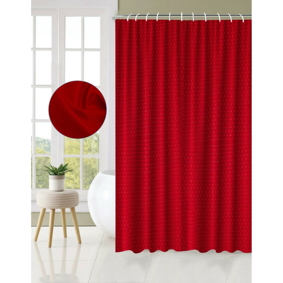 (Red) Extra Long Bathroom Shower Curtain With Hooks Waterproof Curtain