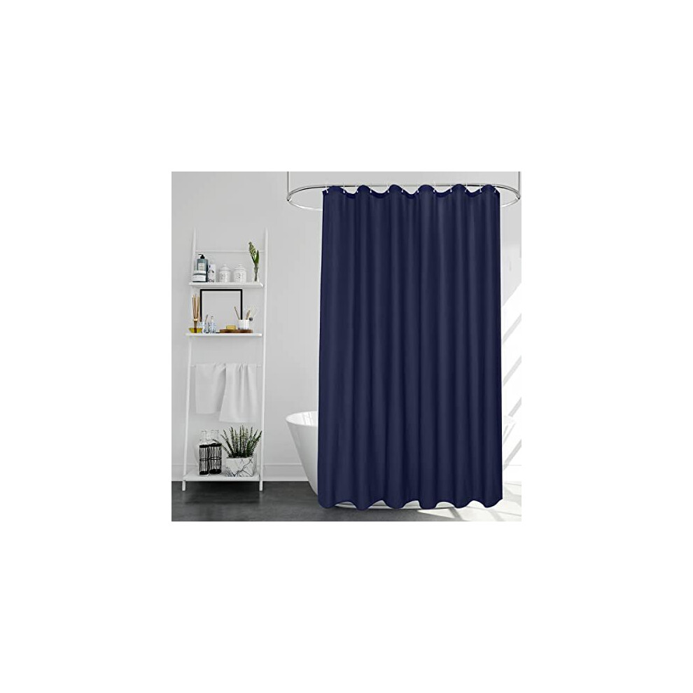 Extra Long Shower Curtain 210cm Drop, Water Repellent Polyester Weighted Bathroom Shower Curtain Mould Proof Resistant, Navy Blue, 180 x 210 Drop