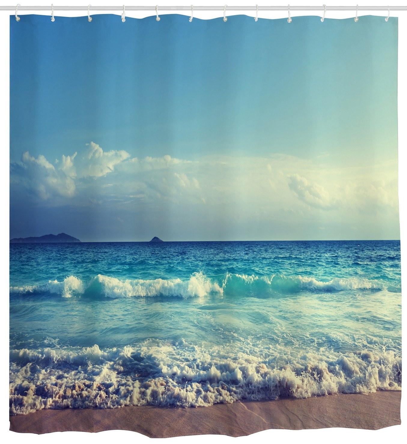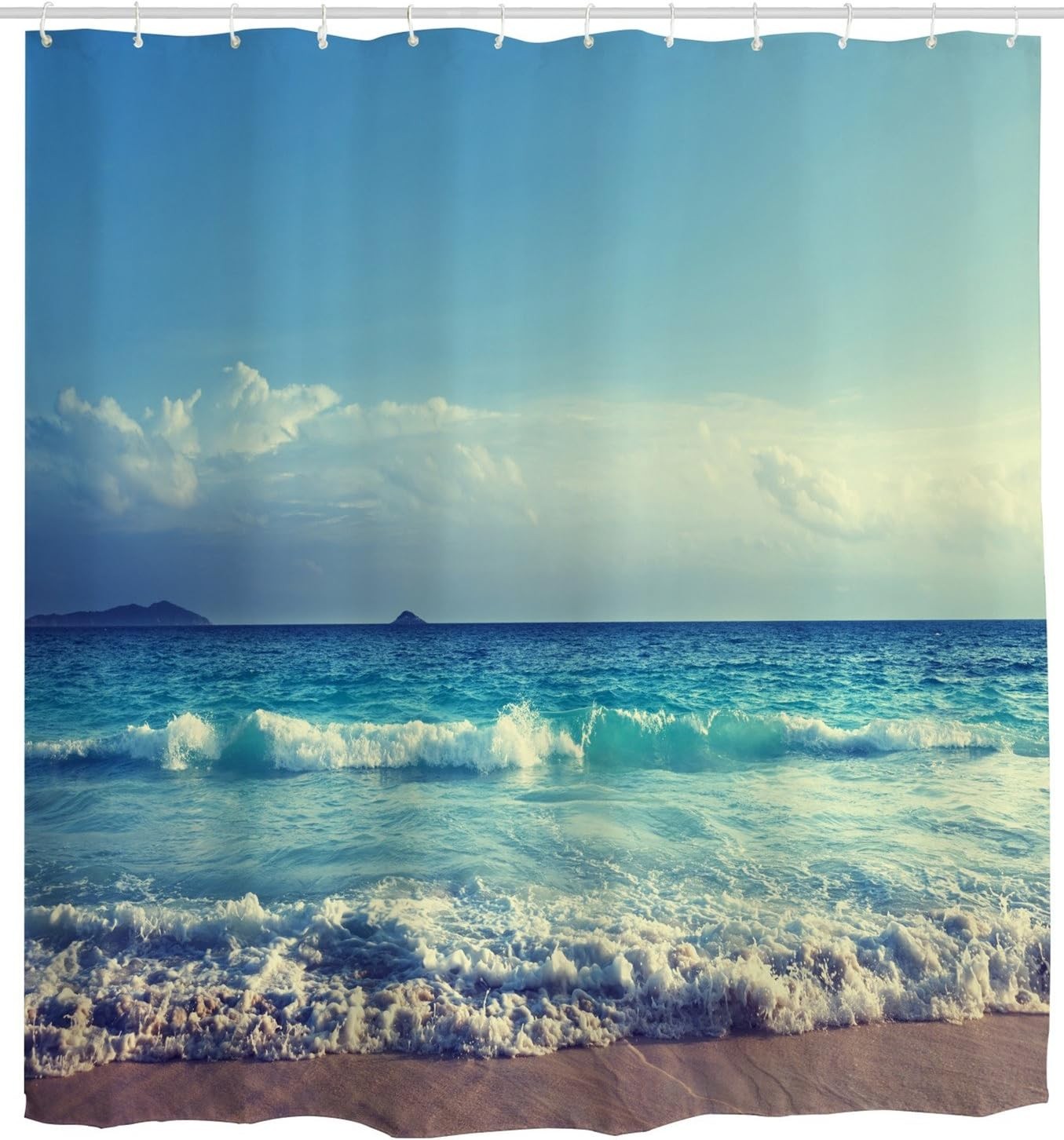 goodbath Extra Long Shower Curtain 214cm, Ocean Waves Sky Waterproof Anti Mould