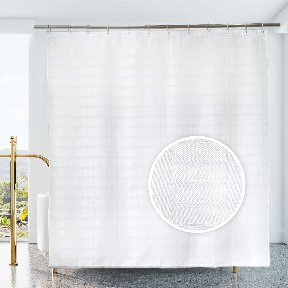 White Shower Curtain Mould Proof and Mildew Resistant Extra Long Shower Curtain
