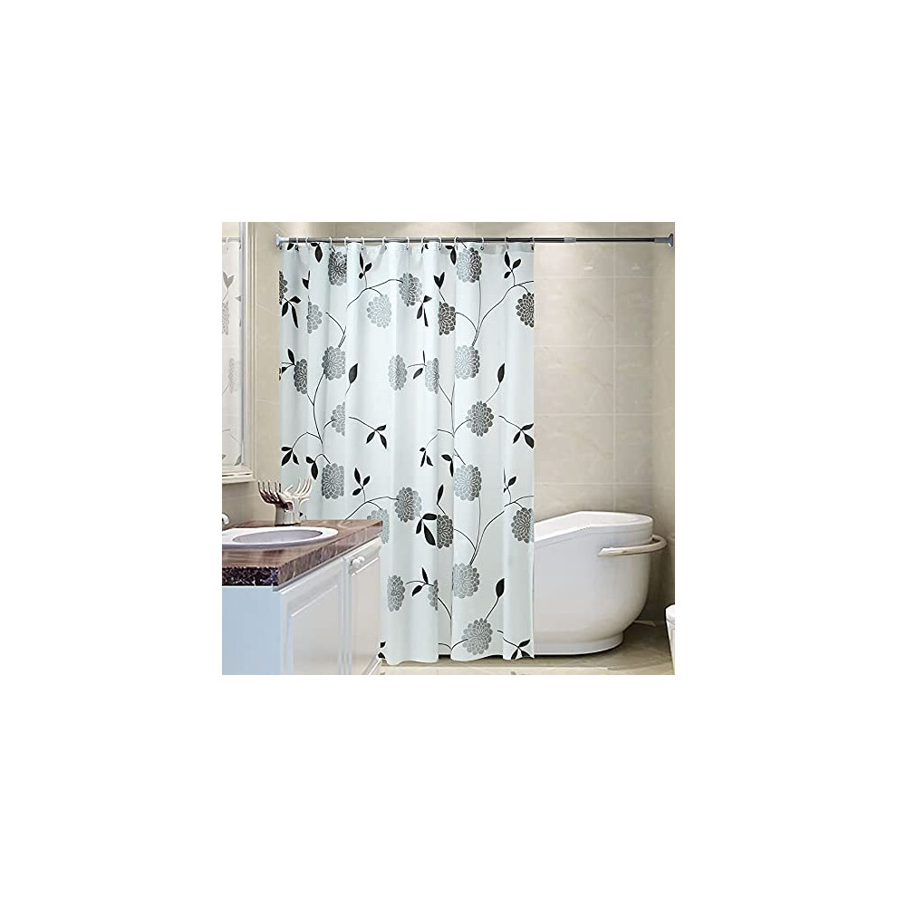 (Black) Extra Long Bathroom Shower Curtain With Hooks Waterproof Curtain