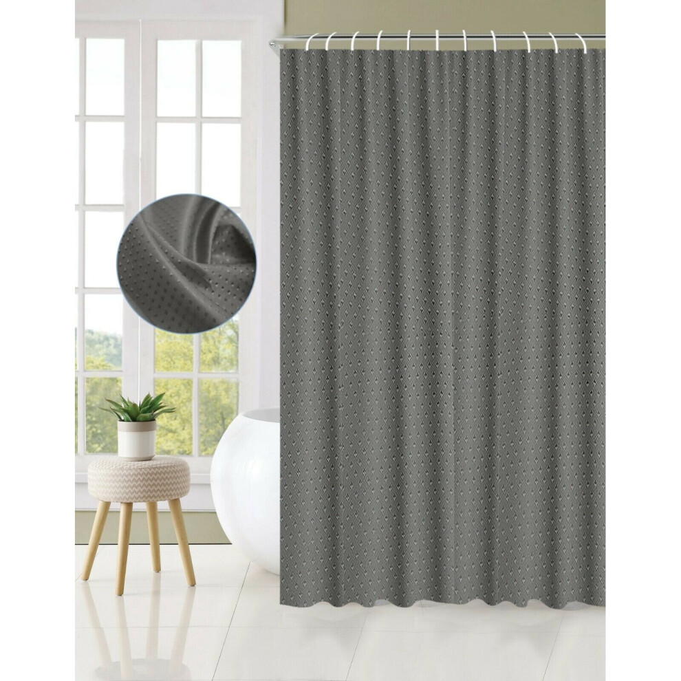 Extra Long Grey Waffle Shower Curtain 180x210cm Mildew & Water Resistant 12 Hook