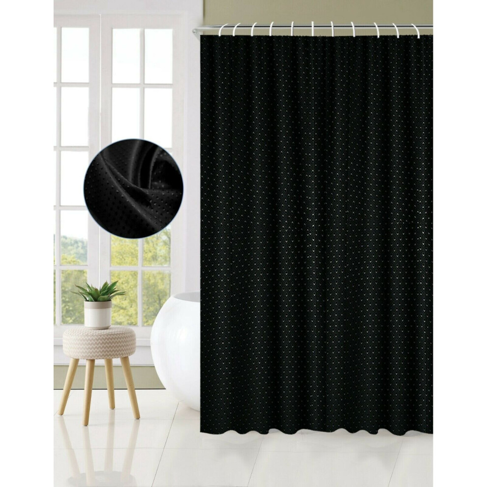 Extra Long Shower Curtain 84" Height - Honeycomb Waffle Weave & Cotton Blend, Hotel Luxury & Spa, Soft Fabric, Washable - Black, 72x84