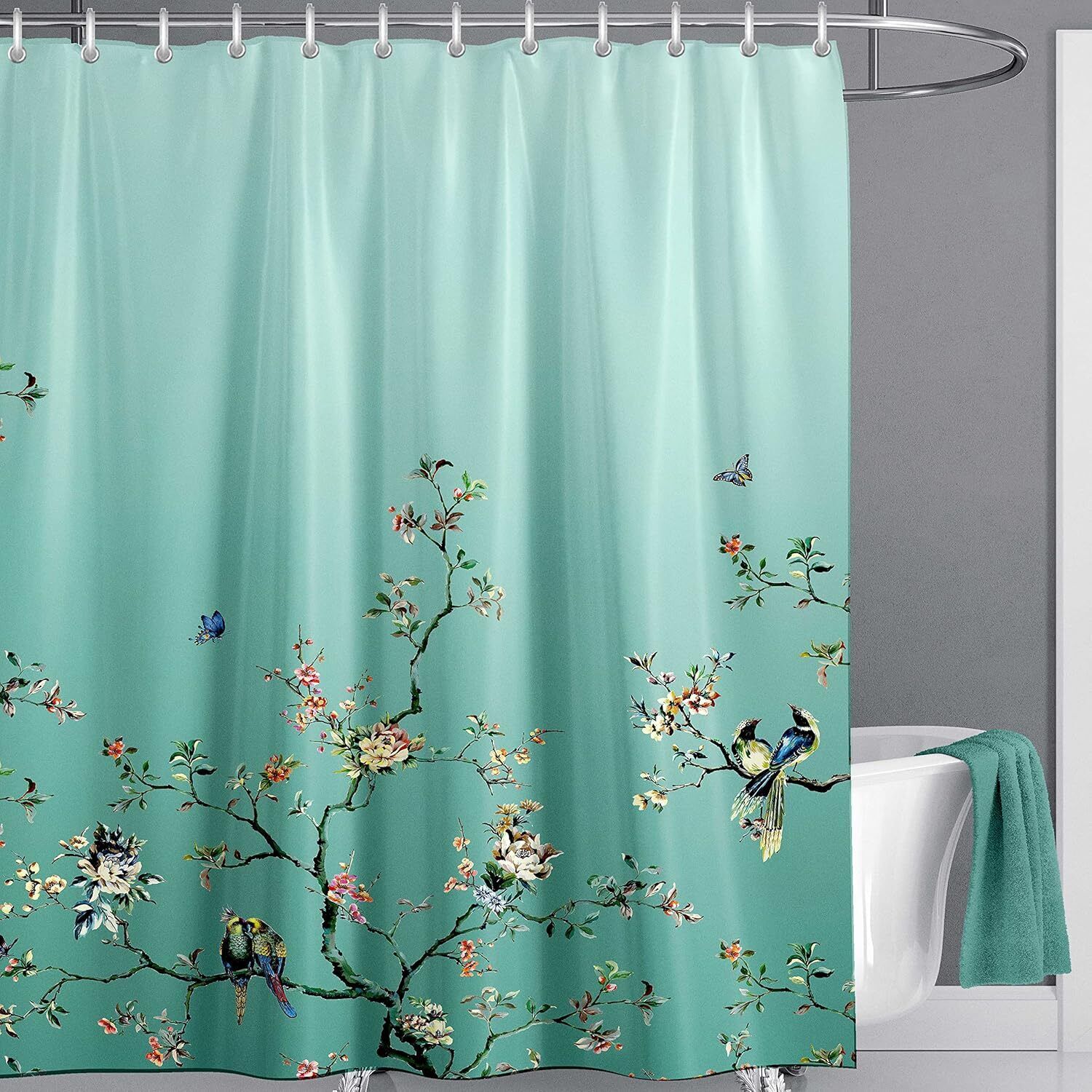 LIVETTY Ombre Green Bird Extra Long Shower Curtain 180cm × 200cm Drop Floral B