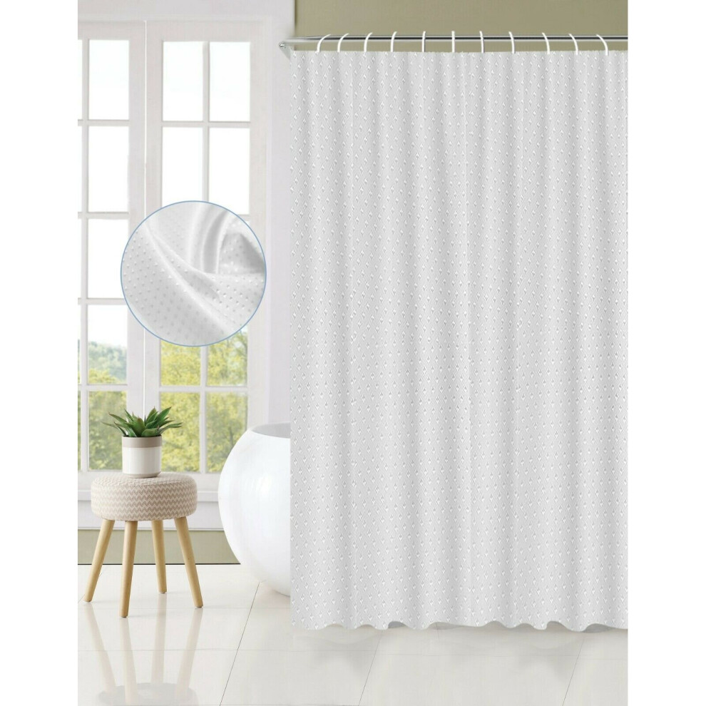 Extra Long Shower Curtain with 86 inch Height, Fabric, Waffle Weave, Hotel Luxury Spa, Water Repellent, Machine Washable, 230 GSM Heavyweight, White Pique Pattern Decorative Bathroom Curtain