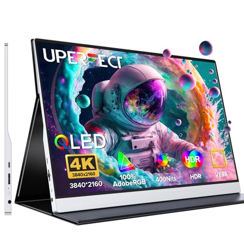 UPERFECT QLED 4K Portable Monitor 15.6'' Silvery 3840x2160 UHD HDR USB-C Monitor, 100% AdobeRGB, 400cd/㎡Brightness, FreeSync Speaker Travel Extra Screen for Laptop, Type-C HDMI, VESA & Smart Case