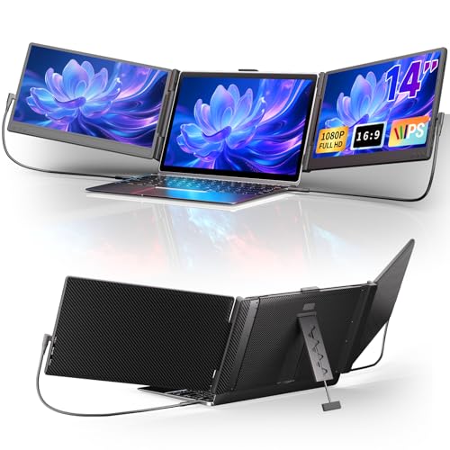 Grazz Laptop Screen Extender Triple Monitor - 14 inch Portable Monitor FHD 1080P Attachment Extended for Laptop Extra Screen Compatible with Windows Mac Travel Work Fits 13-17" Laptops