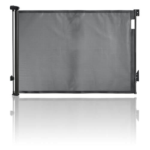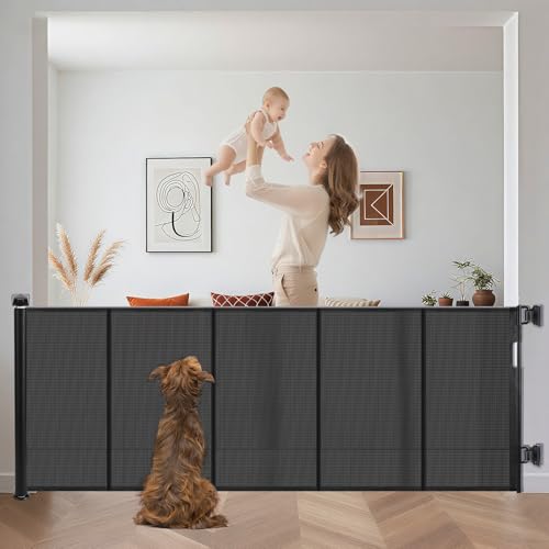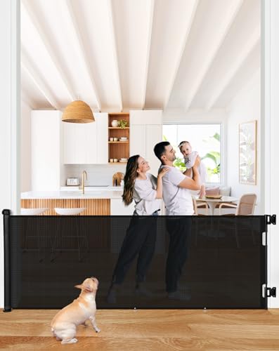 Derimkcoa Retractable Mesh Baby or Dog Gate - 86cm Tall, Extends up to 180cm Wide - Child Safety for Doorways, Stairs, Hallways, Indoor/Outdoor - Black