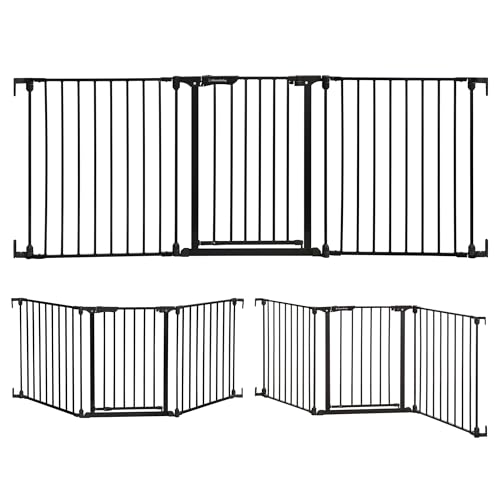 COMOMY 380cm Extra Wide Baby Gate, Dog Gates for Stairs Doorways, Fire Guard Safety Gates for Kids&Pets, Auto Close Baby Fence Barrier Indoor with Door, Hardware Mounted, 6-Panels (76cm Tall, Black)