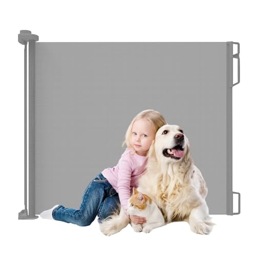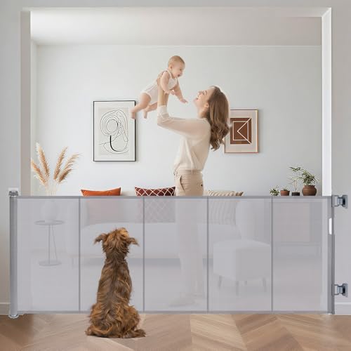GREENSAPPIRE Retractable Baby Gate 140cm Wide x 86cm Tall, Extra Tall Mesh Safety Gate for Baby & Pets, One-Handed Operation, Child & Dog Gate for Stairs, Doorways, Hallways, Indoor/Outdoor Use, Grey