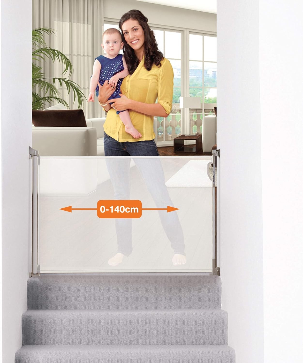 Dreambaby Glide N Hide 90cm Extra Tall, 140cm Wide Retractable Baby Gate - Ideal for Stairs, Doorways & Halls, Durable Mesh, EZY-Check Indicator, Dog & Pet Fence