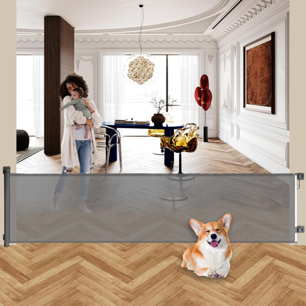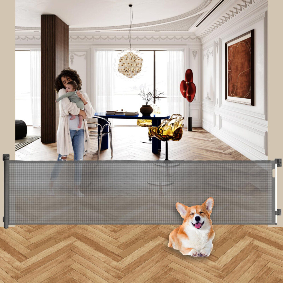 (Grey) Retractable Gate for Babies and Dogs Extends to 130 cm Extra Wide Safety Baby Stair Gate